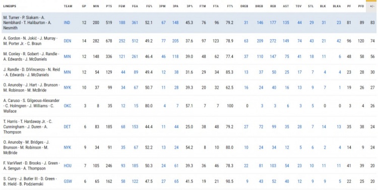 熊猫直播5月24日讯 尼克斯今天在主场109比114再负步行者,系列赛大比分0比2落后。 季后赛至今,尼克斯的首发阵容正负值为-50,这一数据在联盟所有的5人组里、排名倒数第一。 两场东部决赛,尼克斯的首发阵容正负值为-29,而这两场比赛尼克斯一共只输了8分。