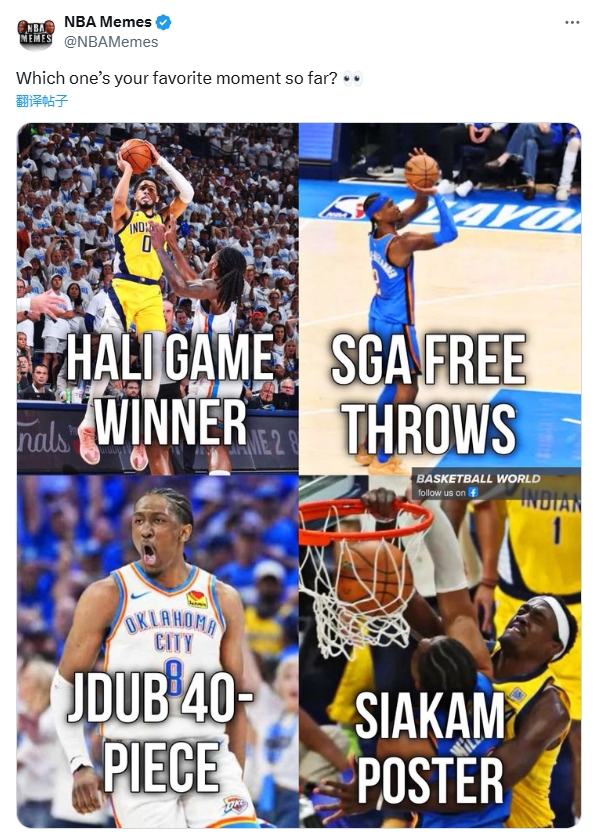 美媒提问 最爱哪个瞬间:哈利绝杀&SGA罚球&杰伦威40分&西卡隔扣